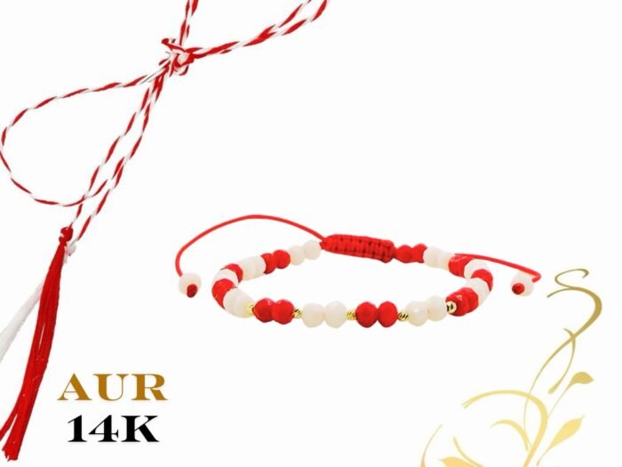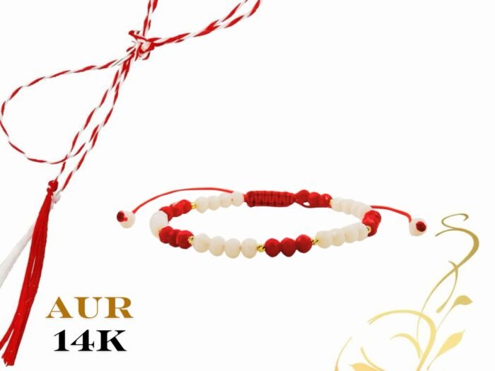 Martisor bratara cu bilute din aur 14k si cristale