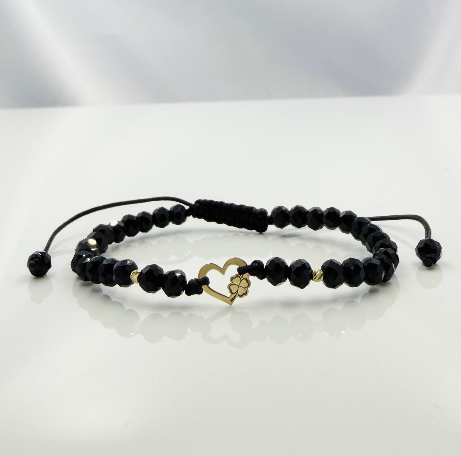 Bratara cu inima cu trifoi, bilute din aur 14k si cristale cod: BRCR103