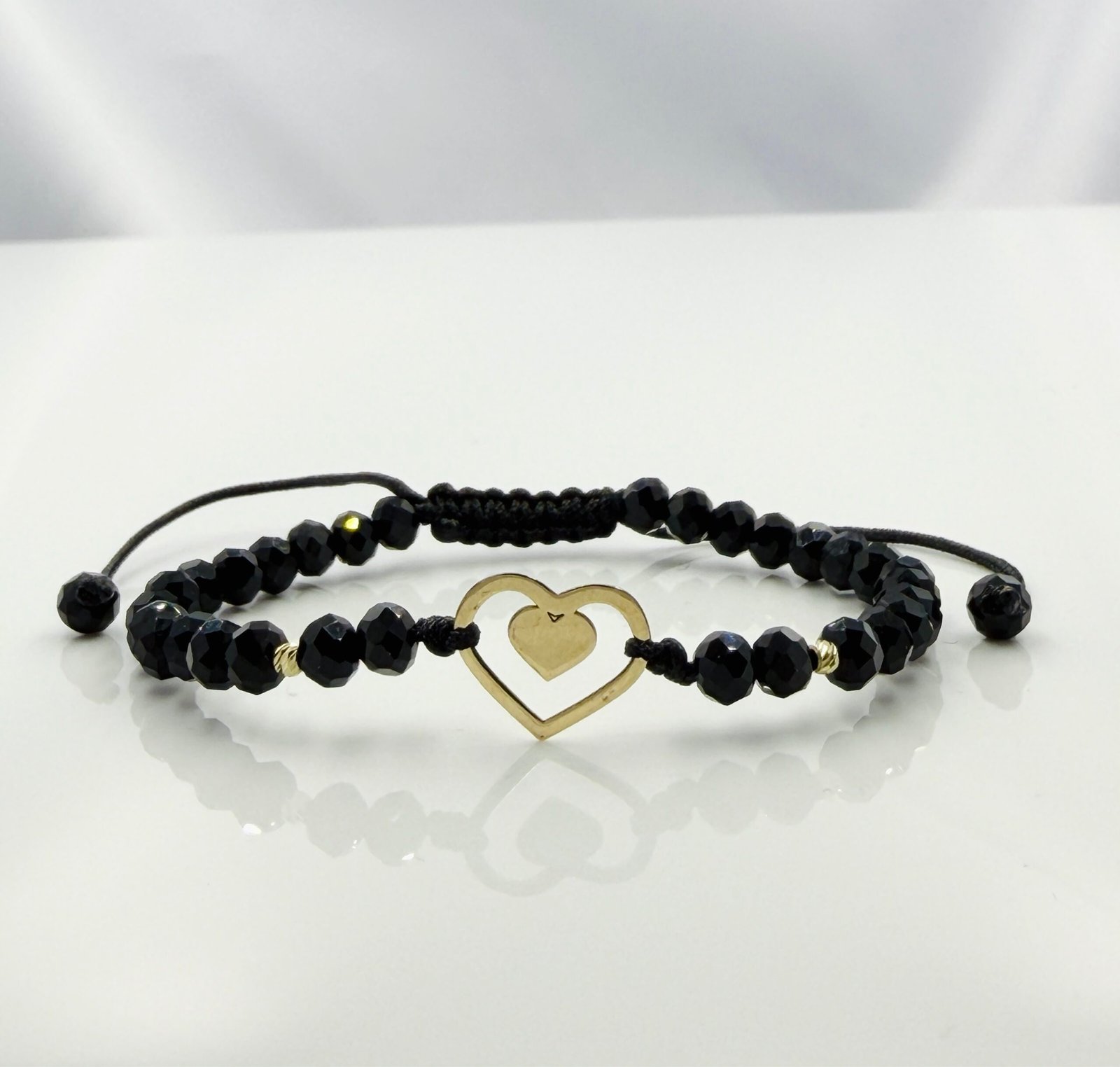 Bratara cu inima dubla, bilute din aur 14k si cristale cod: BRCR106