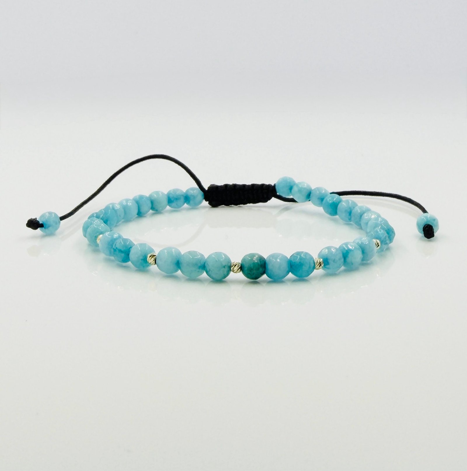 Bratara cu jad bleu si 5 bilute din aur 14k cod: BRPS63