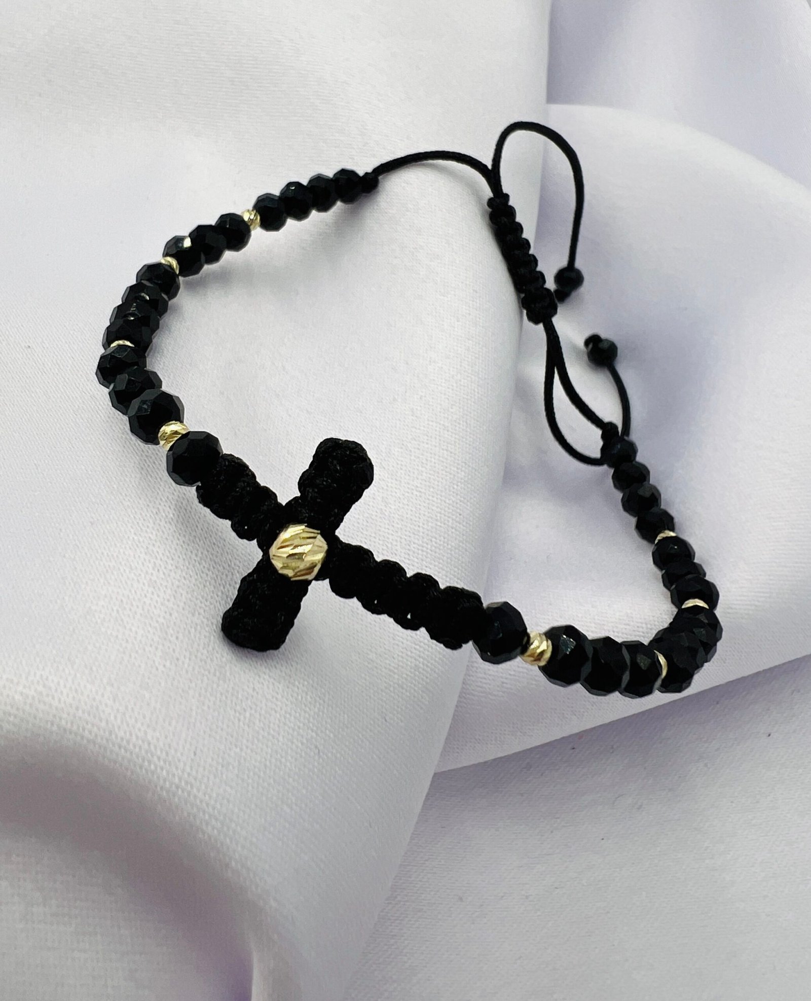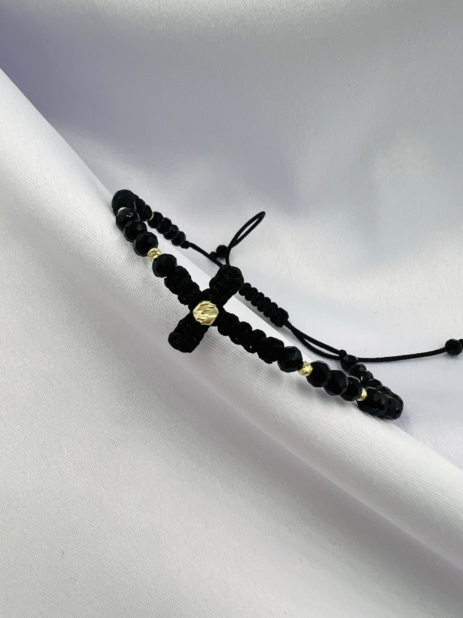 Această brățară unică îmbină simbolismul crucii cu rafinamentul bijuteriilor de lux. Șnurul împletit manual formează o cruce centrală, înconjurată de cristale fine care captează lumina cu fiecare mișcare. Elementele din aur de 14K adaugă un plus de eleganță și valoare, transformând brățara într-un accesoriu deosebit, potrivit atât pentru purtare zilnică, cât și pentru ocazii speciale. Un cadou ideal cu semnificație profundă și design atemporal.