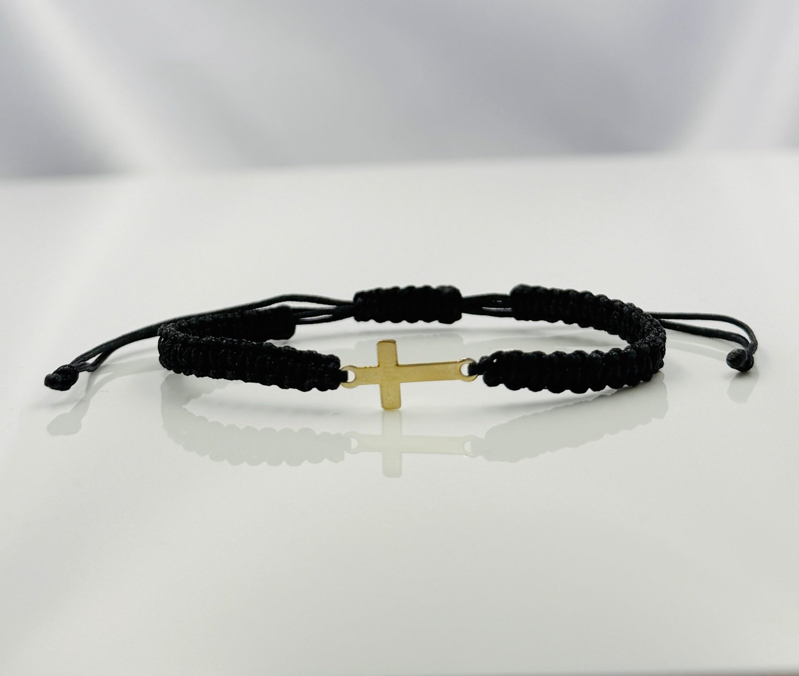 Brățară realizată cu șnur și cruciulita plina din aur 585 14k