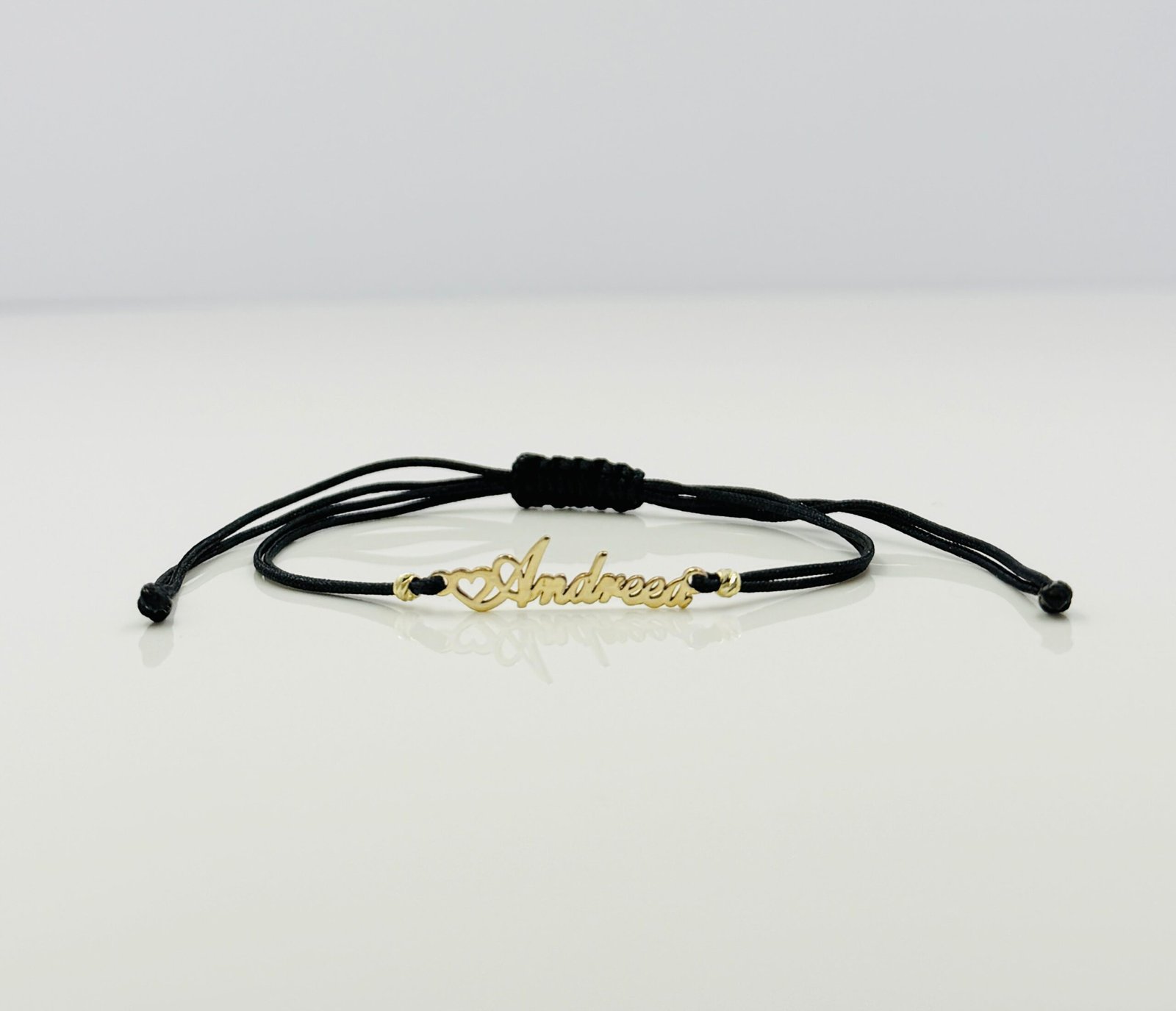 Brățară realizată cu șnur, nume Andreea si bilute de 2,5mm din aur 585 14K