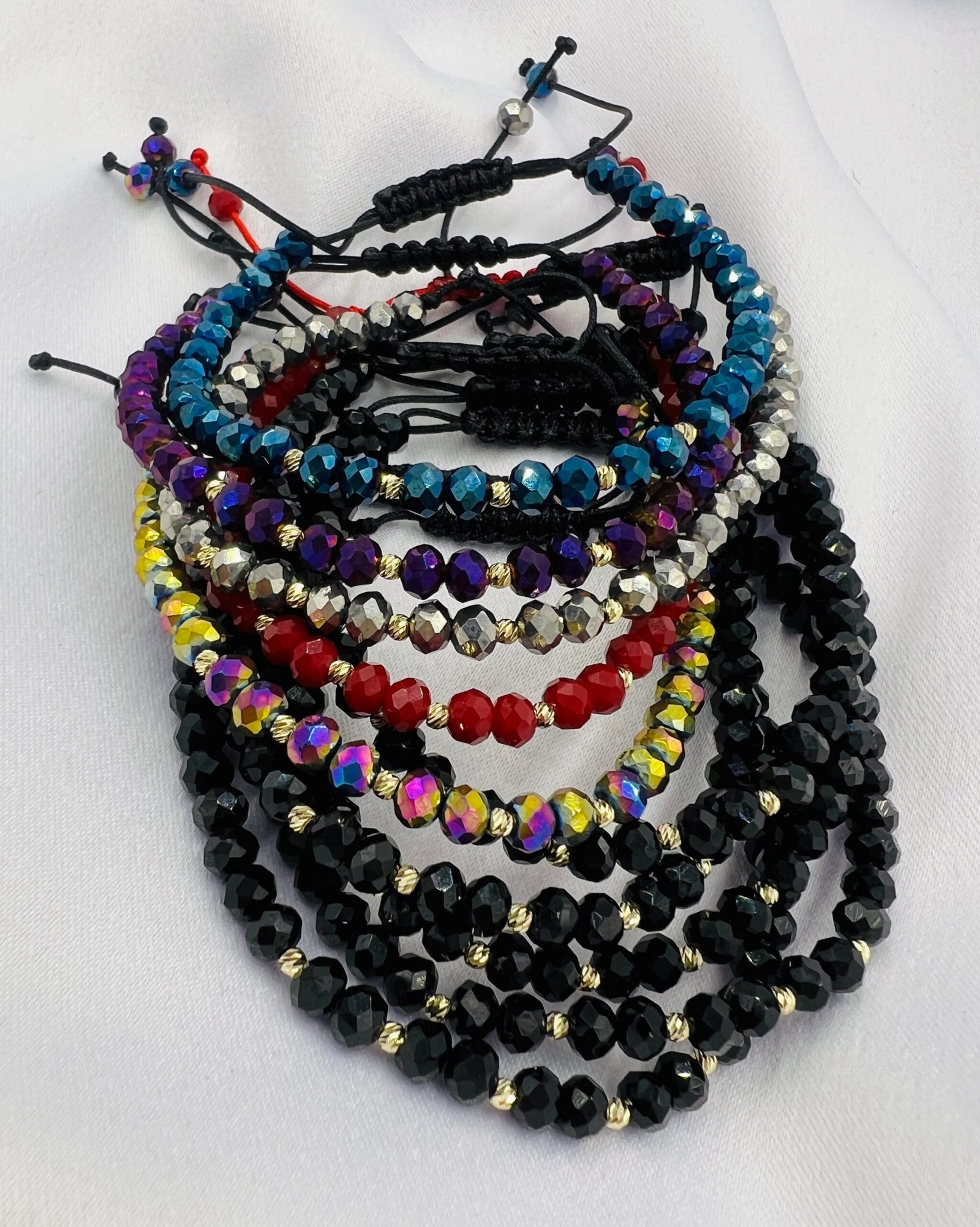 Cele 5 biluțe striate de 2mm sunt înșirate minuțios pe șnurul fin de mătase pe centrul bratarii.