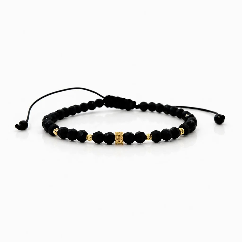 Brățară realizată cu șnur, charm cu pietricele albe, 6 biluțe de 2,5mm din aur 585 14K și cristale de 4mm
