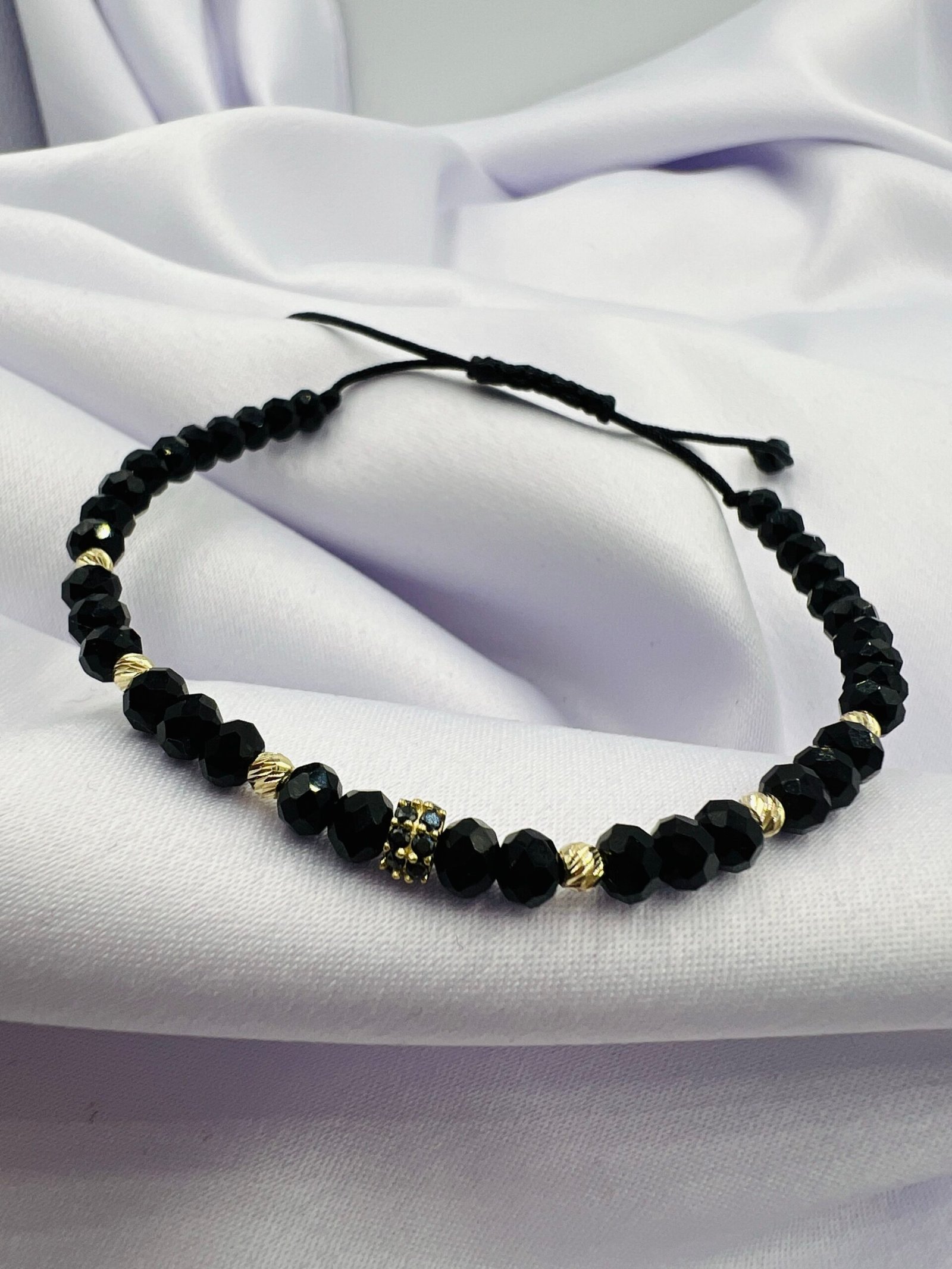 Bratara cu 6 bilute+charm cu pietricele negre din aur 14k si cristale cod: BRCR96