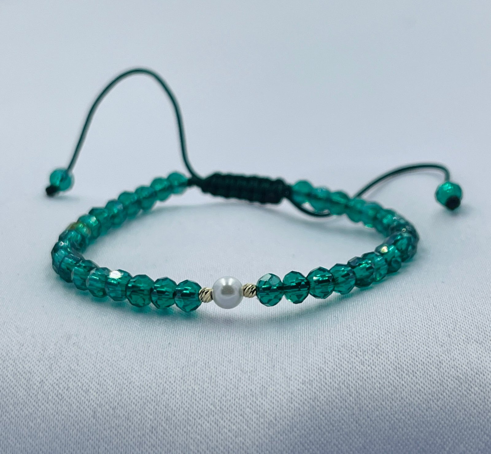 Rafinată și plină de strălucire, această brățară delicată adaugă o notă de eleganță oricărei ținute. Realizată manual, brățara îmbină armonios biluțele cu o perlă centrală, simbol al purității și feminității, completată de cristale colorate ce aduc un strop de veselie și rafinament.