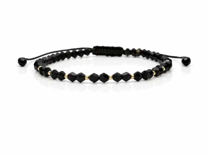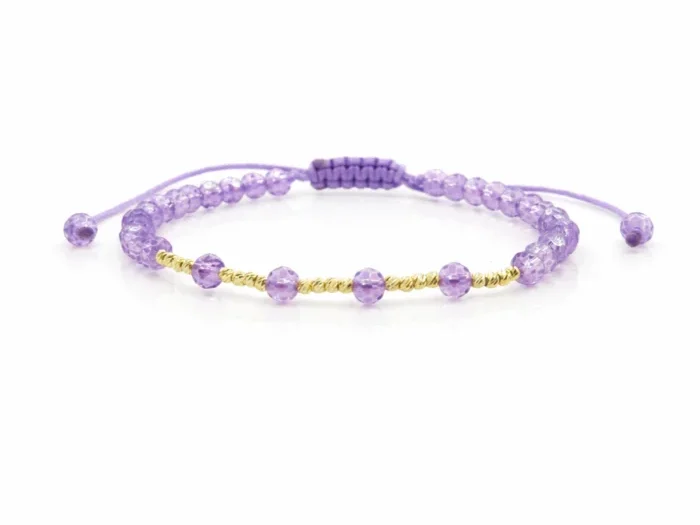 Brățară realizată cu șnur, 6 biluțe de 2,5mm din aur 585 14K și cristale cubice de 4mm