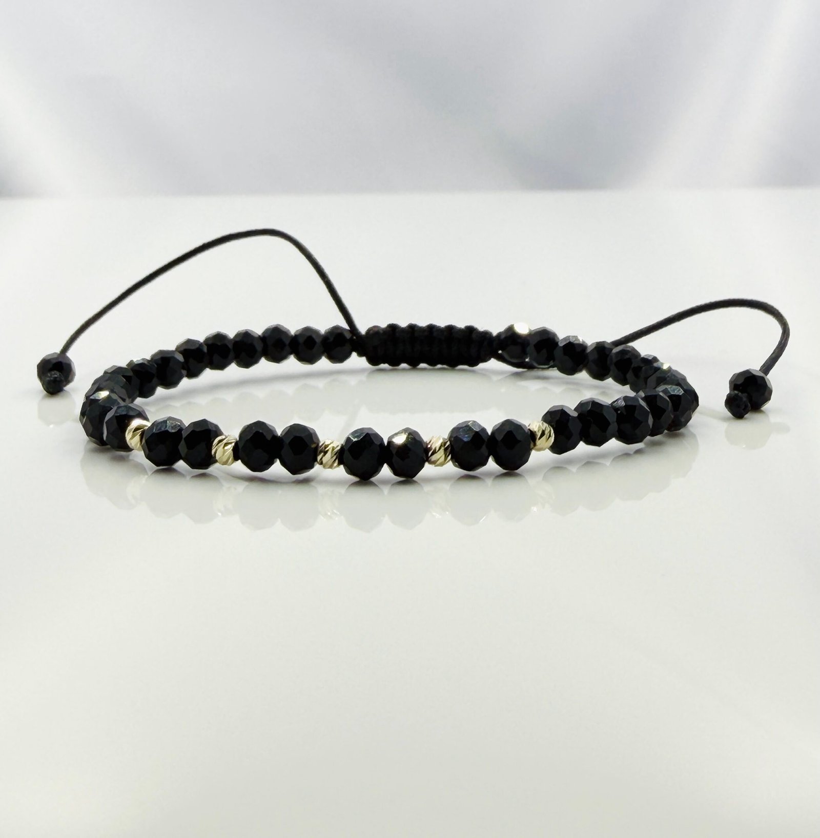 Această brățară cu cristale colorate și biluțe striate din aur 585 14K  este printre preferatele clienților noștri, având un design elegant și fiind ușor de purtat și asortat în diverse ținute vestimentare.