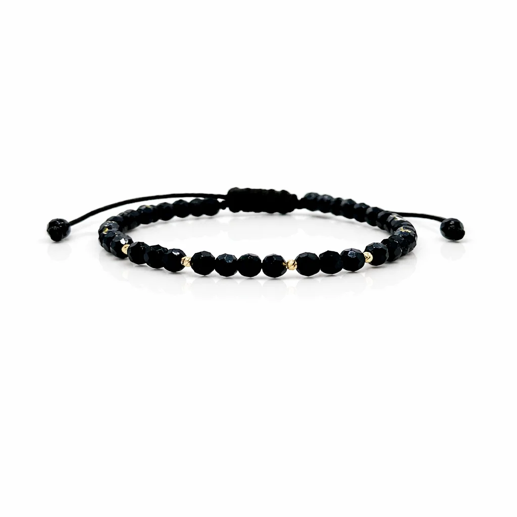 Brățară realizată cu șnur și 4 biluțe de 2mm din aur 585 14K și cristale rotunde de 4mm