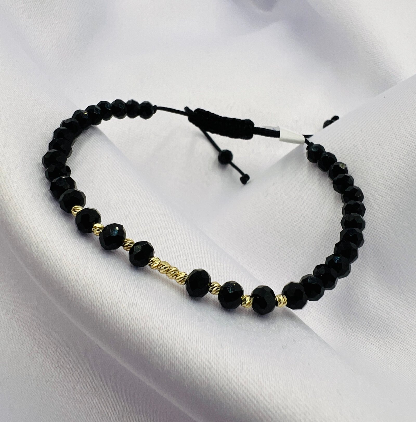 Brățară realizată cu șnur și 10 biluțe de 2mm din aur 585 14K și cristale rotunde de 4mm