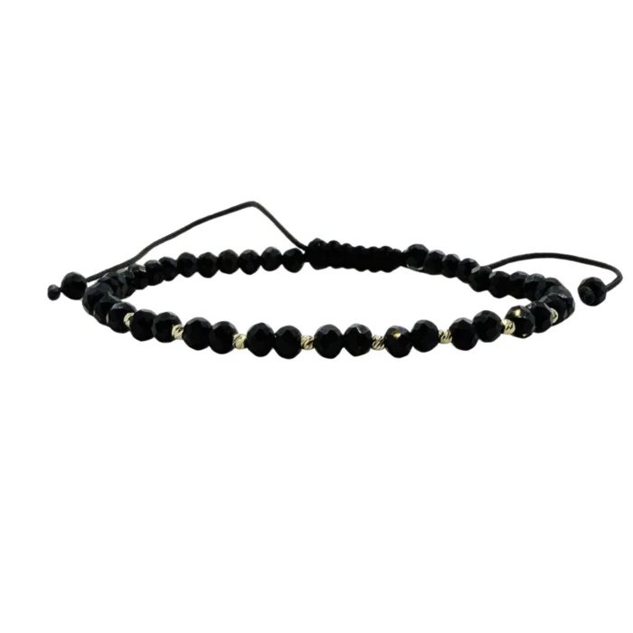 Brățară realizată cu șnur și 10 biluțe de 2mm din aur 585 14K și cristale rotunde de 4mm așezate 2 cu 1