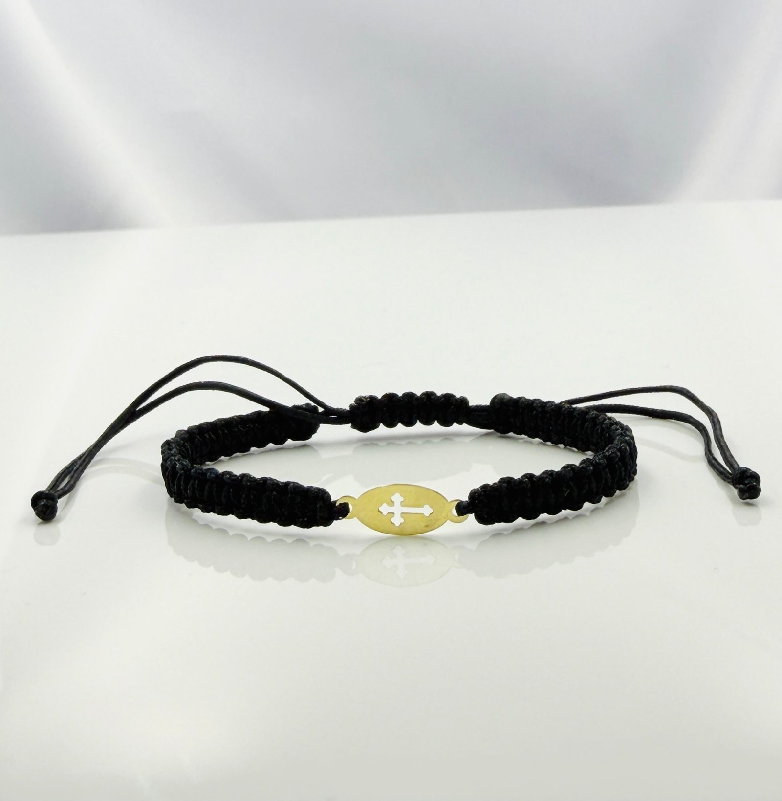 Brățară realizată cu șnur și disc oval cu cruciulita din aur 585 14k