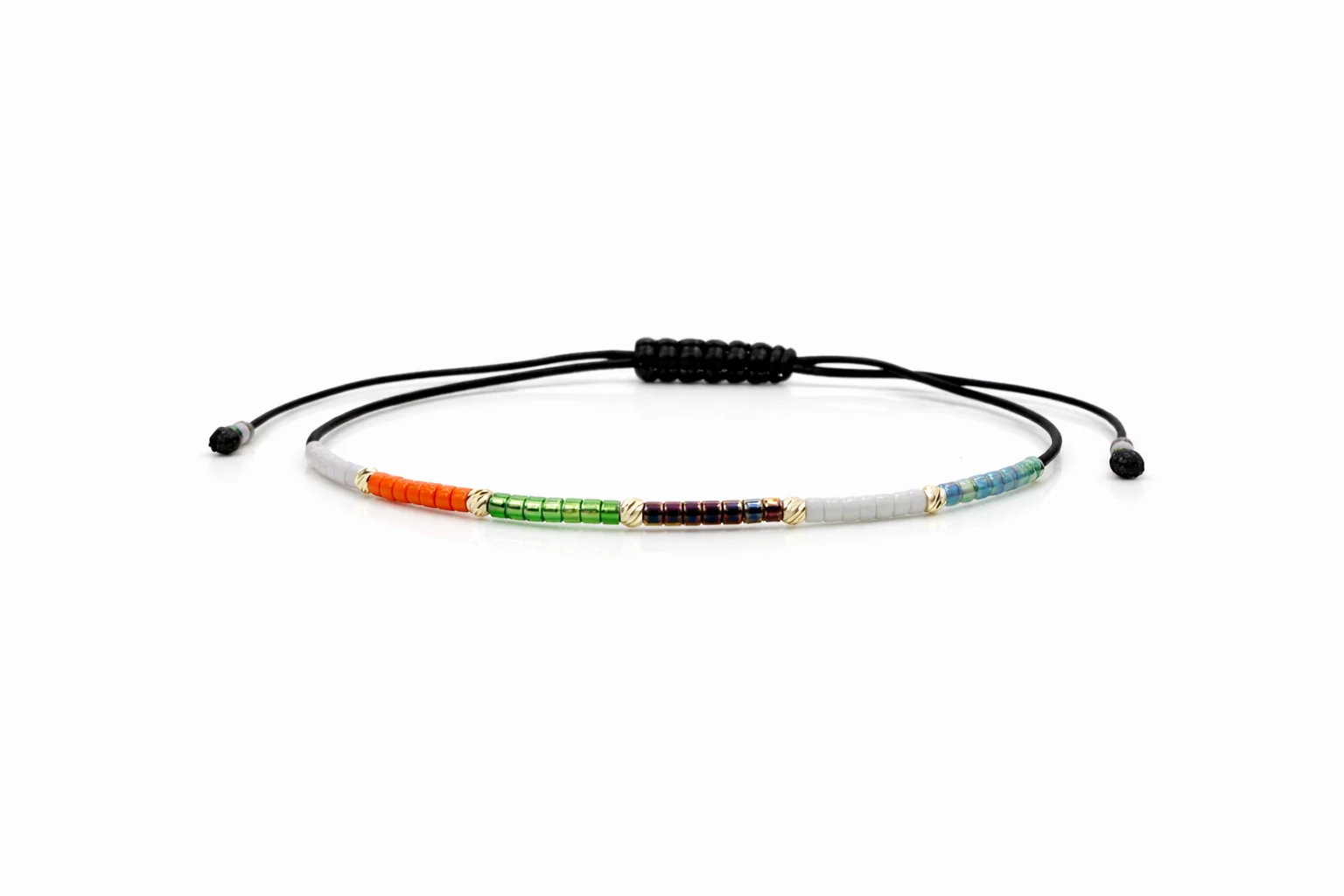Brățară cu mărgele Miyuki și 5 biluțe striate din aur 14K