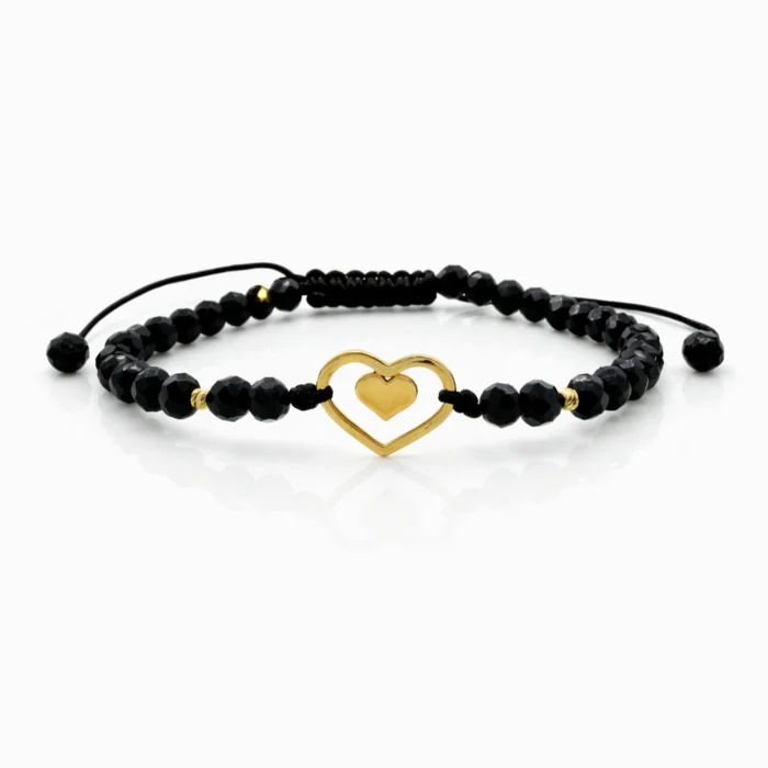 Această brățară cu cristale din sticla, biluțe striate din aur 585 14K si inima dubla este printre preferatele clienților noștri, având un design elegant și fiind ușor de purtat și asortat în diverse ținute vestimentare.