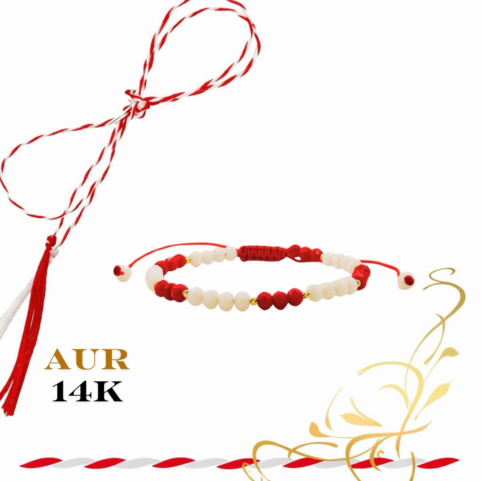 Martisor bratara cu bilute din aur 14k, margelute Miyuki si cristale