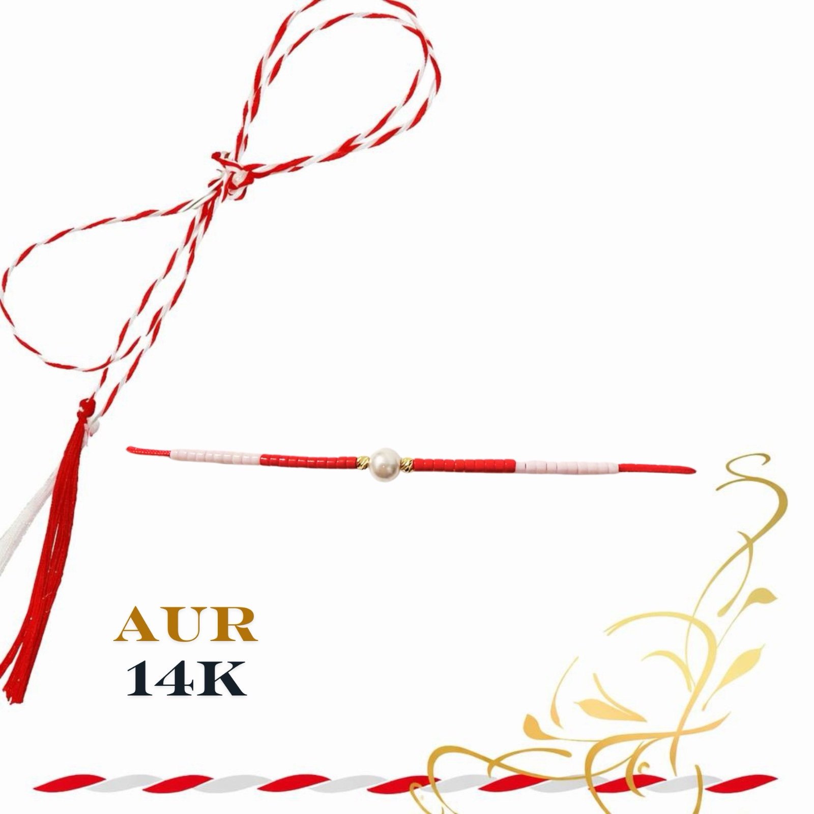 Martisor bratara din aur 14K – perla, margelute miyuki si bilute